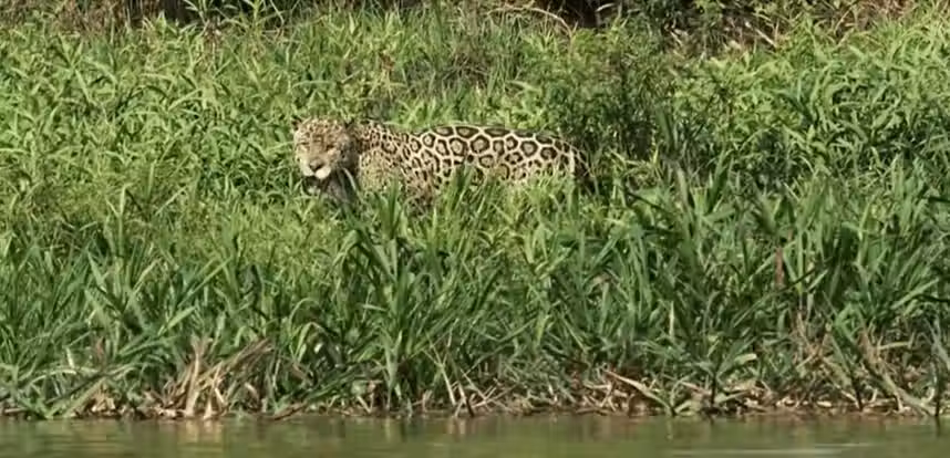 美洲豹下水獵殺鱷魚,一擊致命,鱷魚毫無還手之力_刀疤_公豹_母豹