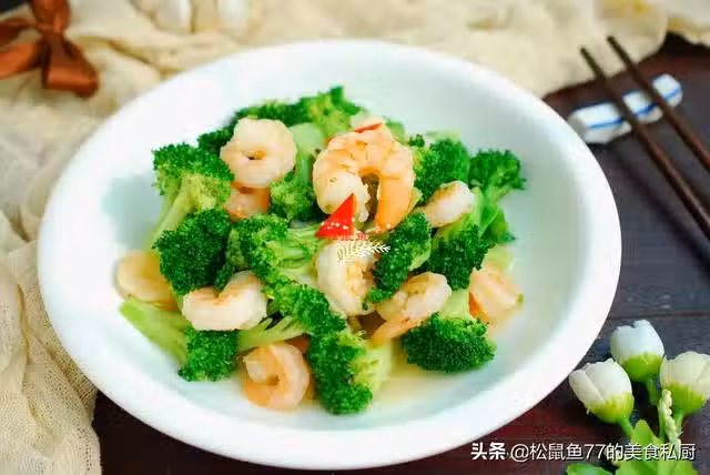 食材:西蘭花小半顆,蝦仁200克,鹽適量,食用油適量,料酒2勺,大蔥1段,老薑1小塊,水澱粉1勺,雞粉1小勺