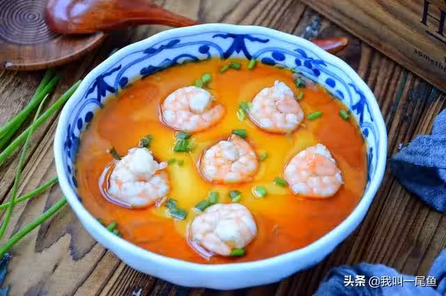 材料:雞蛋2個、日本豆腐1個、鮮蝦6個、蔥1根、生抽1湯匙、香油半湯匙、鹽4克、料酒1湯匙、生薑1片、胡椒粉少許
