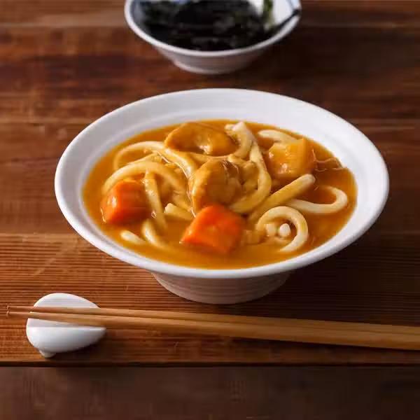 烏冬麵 一人份、香菰 幾朵、胡蘿蔔 半根、香乾 一塊、西紅柿 一個、小油菜 兩顆、咖喱粉 2小匙、鹽 1/2小匙、糖1/2小匙