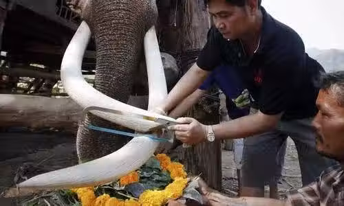 人們果斷割掉大象的牙齒,看似殘忍,實則卻是為了幫它「保命」