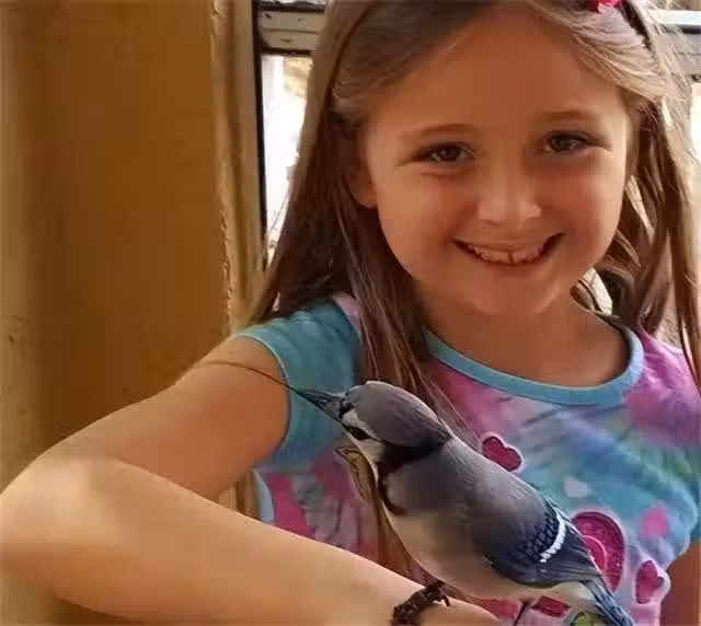 圖丨蒂娜的女兒和格雷西 有一次外出時,蒂娜意外了解到一則消息:藍冠鴉這樣的野生動物不適合像貓貓狗狗等寵物一樣養在家裡,否則的話,它就會喪失捕食、築巢等生活能力。 這十分不利於藍冠鴉這一族群的長久發展,也不利於自然環境的生態平衡。藍冠鴉只有在自然環境當中才能真正展現出它的本領,展現出它最大的價值。
