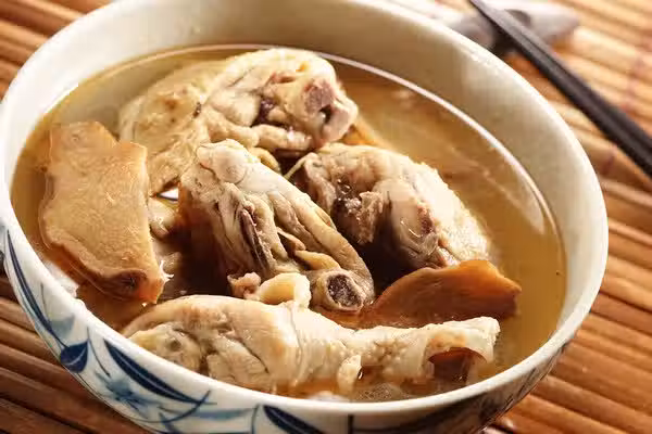 1.雞肉洗凈切成塊狀,老薑洗凈切成薄片; 2.麻油以大火燒熱,放入薑片後改轉小火爆至褐色,但不能焦黑; 3.轉大火,放入雞塊炒至雞肉約七分熟; 4.將水由鍋子四周往中間淋入,加蓋煮滾後,轉小火煮30至40分鐘即可。 使用階段:產後第三周至月子結束食用