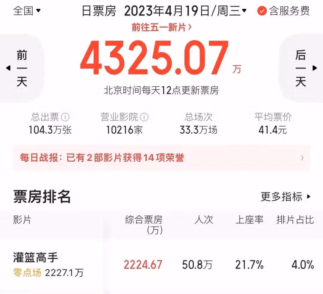 據貓眼專業版初步統計數據,影版《灌籃高手》的內地零點場票房突破2200萬,創下疫情三年以來第二高的零點場票房!(僅次於2021年的《速度與激情9》,遠超《阿凡達2》),全國有超過50萬人次觀看了零點場。截至今日18:20,影片的首日累計票房已經破億!首日超290.8萬的觀影人次,也刷新了日本動畫在內地的影史首日最高紀錄!