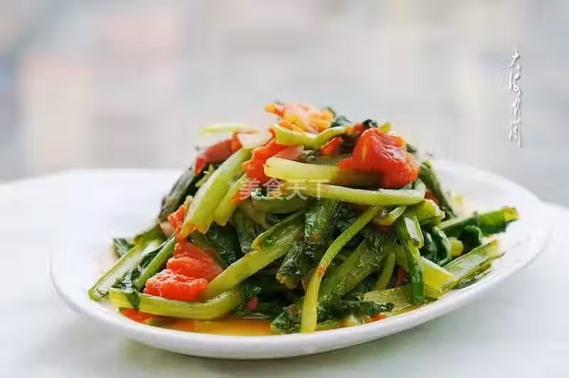 小白菜200g,番茄2個,植物油、鹽、竹鹽果蔬粉、花椒粒,金蘭醬油適量