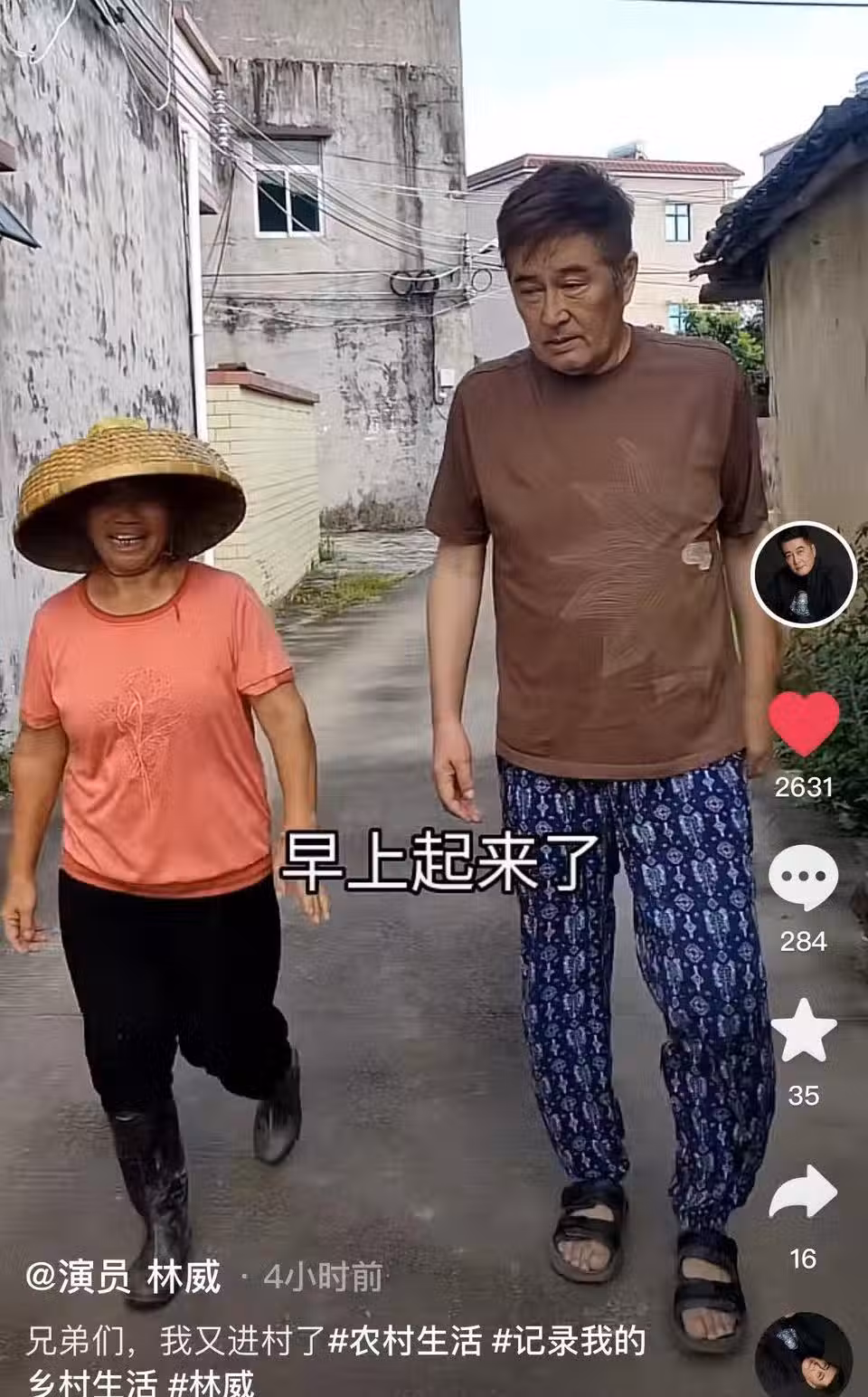 視頻中他不僅穿著樸素,甚至可以說是完美融入鄉村。 那條大花褲子更是跟家裡奶奶輩的花褲子一樣。 看樣子是暫居在廣東,體驗當地的農村生活,不過這入鄉隨俗的林威可是一點明星樣子也沒有了。