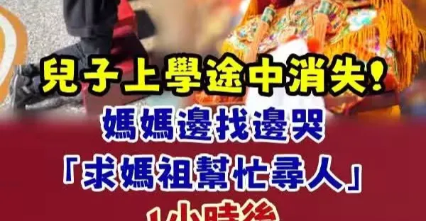 兒子上學途中消失,媽媽邊找邊哭求媽祖幫忙尋人, 1小時後兒子突然出現了:聽到阿姨在叫我