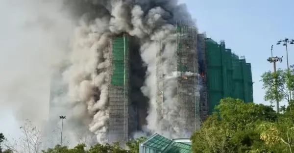 香港大埔宏福苑狂燒7棟!天台噴火如「火山爆發」 五級火警奪12命