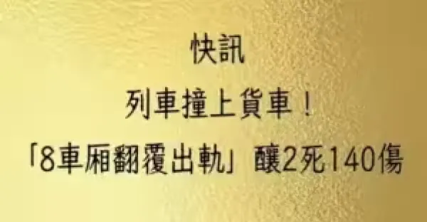 快訊/列車撞上貨車! 「8車廂翻覆出軌」釀2死140傷!