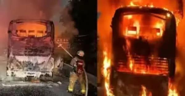 快訊/國道1號「43人客運」火燒車… 火海瞬間吞沒車體