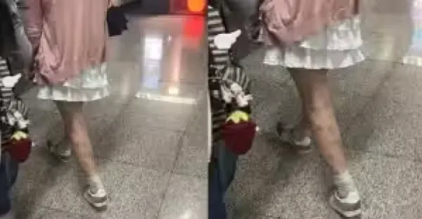 地鐵站想搭訕正妹卻被腿上「詭異視覺」嚇倒!網友放大照片後搭急喊:快跑!已有人中招!