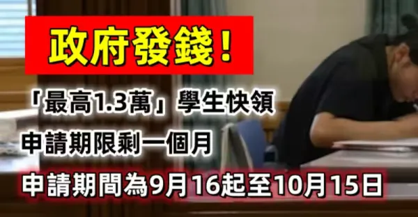 快訊/政府發錢!「最高1.3萬」學生快領 申請期限剩一個月...