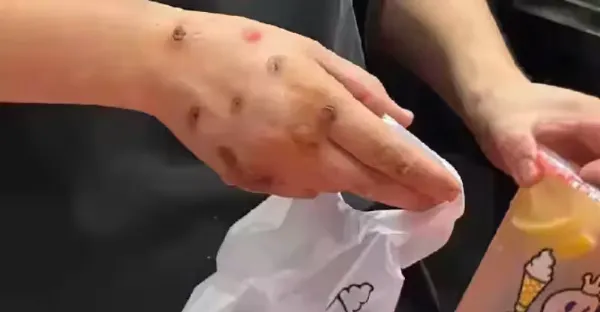 傍晚買奶茶時,驚見店員滿手詭異「黑色圓疤」,我嚇得不敢喝!PO網求助後網友狂喊:快丟掉!