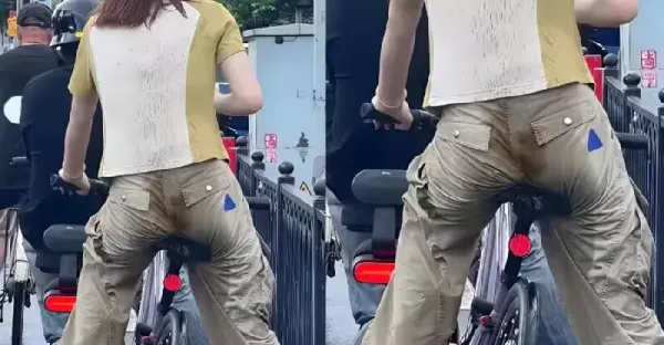 騎行車美女褲子驚現「不明水漬」!眼尖網友發現「驚人細節」後,所有人都沉默了