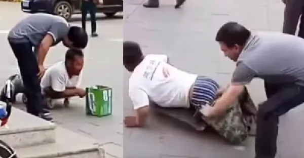 男子當街動手扯掉「殘障乞丐褲子」惹眾怒,接下來的「難堪畫面」讓現場驚呼:你是對的!