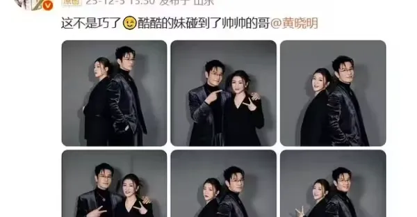 陳夢曬和表哥黃曉明六宮格合照,一身西裝妝容精緻,黃曉明回應:有這麼又酷又棒又美又颯的妹妹