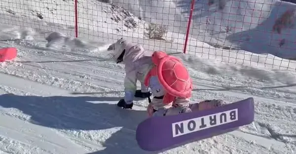 全紅嬋曬滑雪視頻!11秒10次摔倒,四腳朝天連滾帶爬,配文:好玩