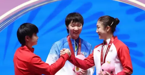 全運會桌球女單頒獎禮:陳夢開心,曼昱笑容燦爛,與教練合影留念
