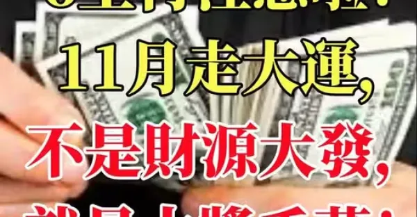 6生肖注意啦!11月走大運,不是財源大發,就是大獎千萬