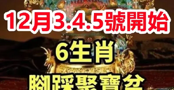 12月3.4.5號開始,6生肖腳踩聚寶盆,開始走好運!