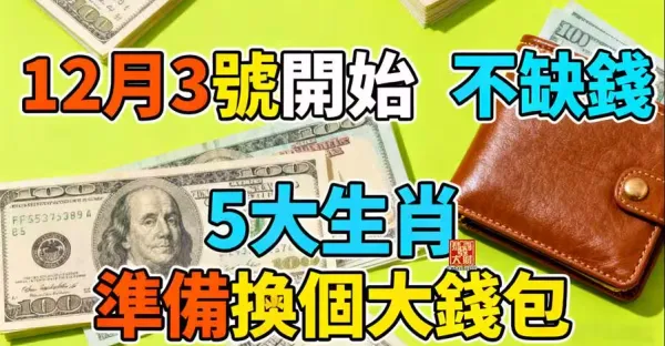 12月3號開始不缺錢,5大生肖準備換個大錢包!