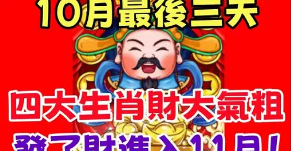 10月最後三天,四大生肖財大氣粗,發了財進入11月!!