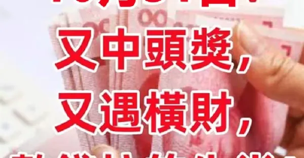 10月31日(10月最後一天)又中頭獎 ,又遇橫財,數錢忙的生肖! !
