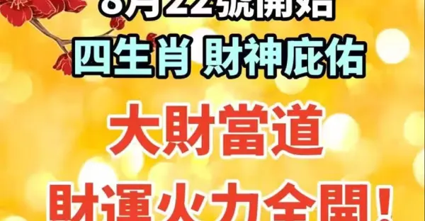 8月22號開始, 四生肖財神庇佑,大財當道,財運火力全開!