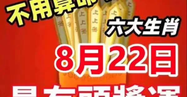 六大生肖:8月22日開始最有頭獎運!
