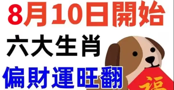 鴻運當頭的六大生肖:8月10日中頭獎,11日發橫財 ,12日偏財旺~