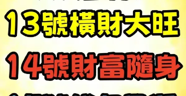 明天 10月14號 「 三生肖 」 橫財最旺!
