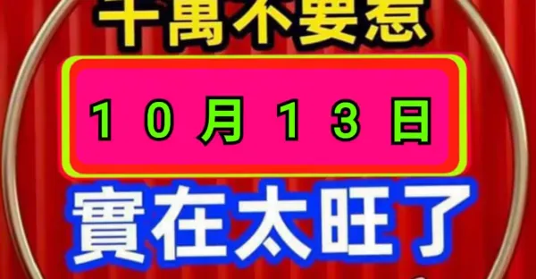 明天 10月13號 三生肖 橫財最旺
