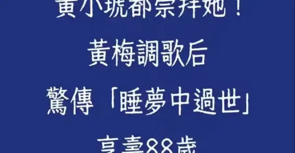 黃小琥都崇拜她!黃梅調歌后驚傳「睡夢中過世」享壽88歲!
