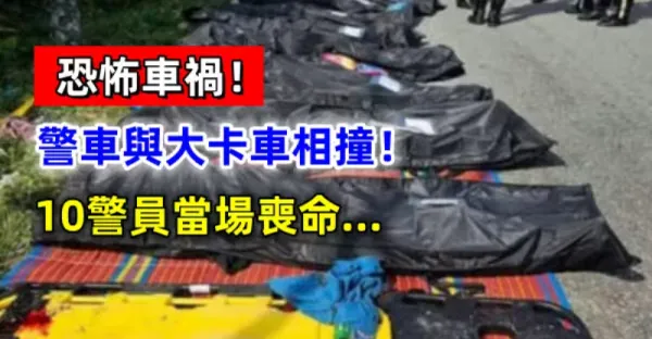 恐怖車禍!警車與大卡車相撞! 10警員當場喪命