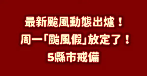 快訊/最新颱風動態出爐了! 周一「颱風假」放定了! 5縣市戒備