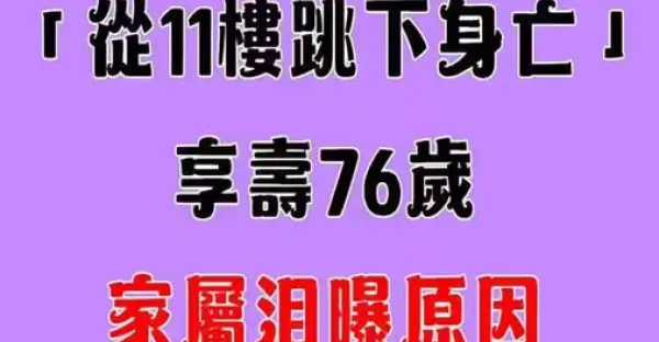 中視小生驚傳 「從11樓跳下身亡」 享壽76歲 家屬淚曝原因 「他想不開很久了」周遊聞噩耗嚇到痛哭!