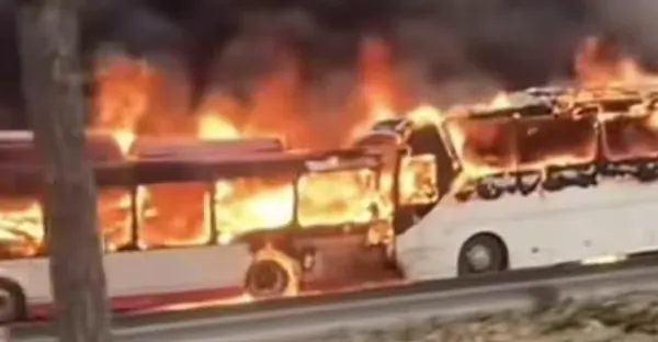 快訊/重大死亡交通事故!遊覽車追撞「燒成火球」, 只剩骨架 目擊者嚇壞「死傷曝光」