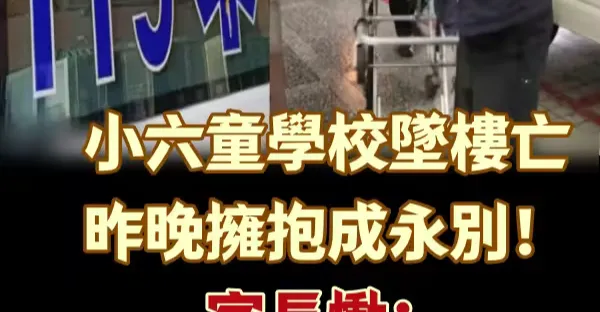 小六童學校墜樓亡,昨晚擁抱成永別!家長慟:怎麼就沒了