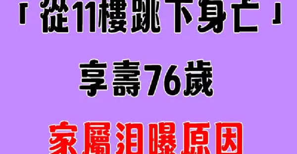 中視小生驚傳「從11樓跳下身亡」享壽76歲~