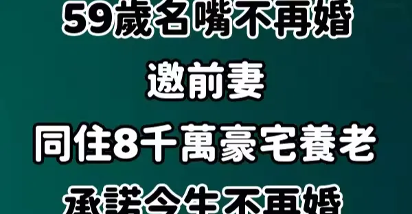 離婚好聚好散!59歲名嘴不再婚「邀前妻同住8千萬豪宅養老」承諾今生不再婚,照顧她到老!