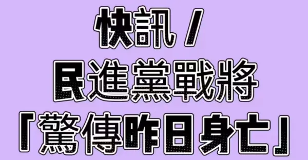 快訊/民進黨戰將「驚傳昨日身亡」