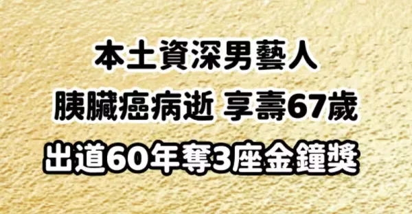 本土資深男藝人,胰臟癌病逝享壽67歲 出道60年奪3座金鐘獎.