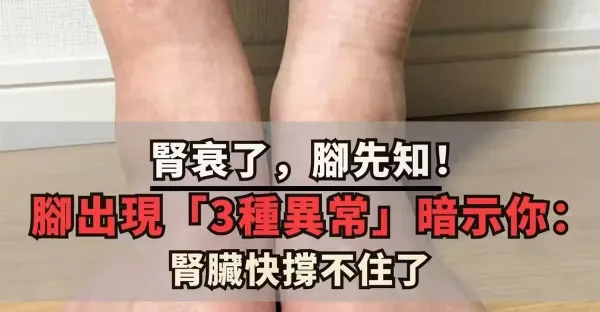 腎衰了,腳先知!!腳出現3種異常表現,暗示腎臟快要「撐」不住了