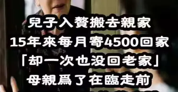 兒子入贅搬去親家!15年來每月寄4500回家「卻一次也沒回老家」...母親為了在臨走前見兒子一面,拖著病.體上門探望「敲開門她淚如雨下!」