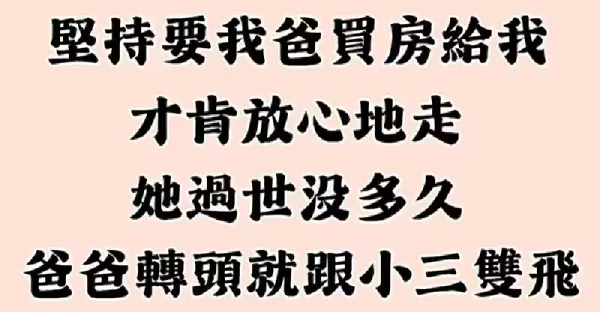 爸爸出軌!患癌媽媽臨走前「要爸爸買房給我…」媽媽走後「爸爸轉頭就跟小三雙飛」現世報卻來了