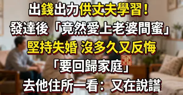 出錢出力供丈夫學習!發達後「竟然愛上老婆閨蜜...」堅持失婚 沒多久又反悔「要回歸家庭」去他住所一看:又在說謊