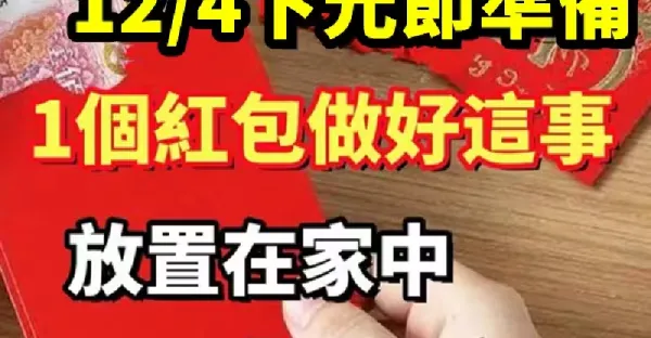 就在明天12/4下元節,準備「1個紅包做好這事」放置在家中這個位置,招橫財走好運!