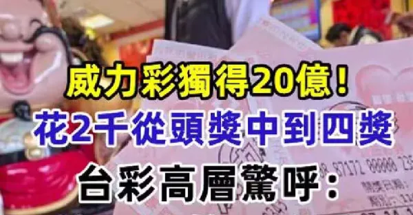 威力彩獨得20億!「花2千從頭獎中到四獎」台彩高層驚呼:這買法第一次見