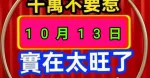 千萬不要惹 ( 6個生肖 ) 10月13日 實在太旺了