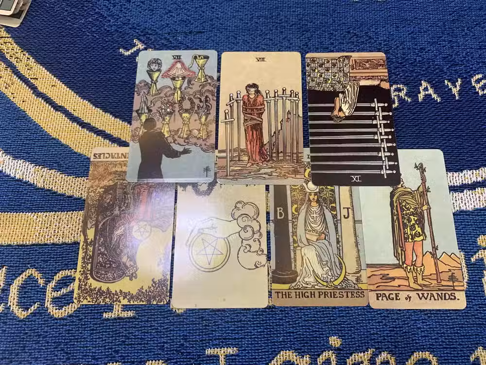 這組牌的朋友,感覺兩個人最近可能會因為一件事情或者是一個談判沒有談攏,造成兩個人之間互相不信任,溝通也不順,能量比較複雜,可能會有一小部分人會存在第3個人介入的情況。